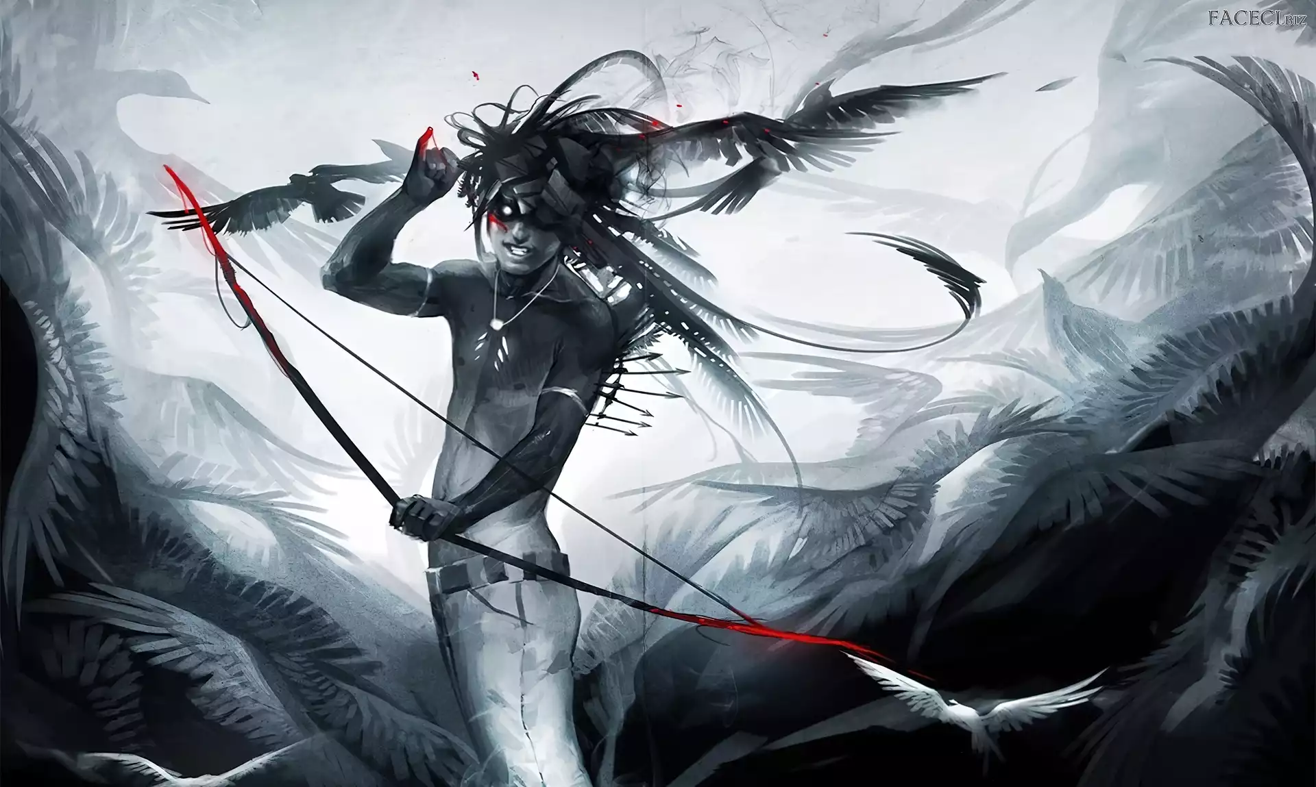 Mężczyzna, Ptaki, Sakimichan, Łuk - faceci.biz